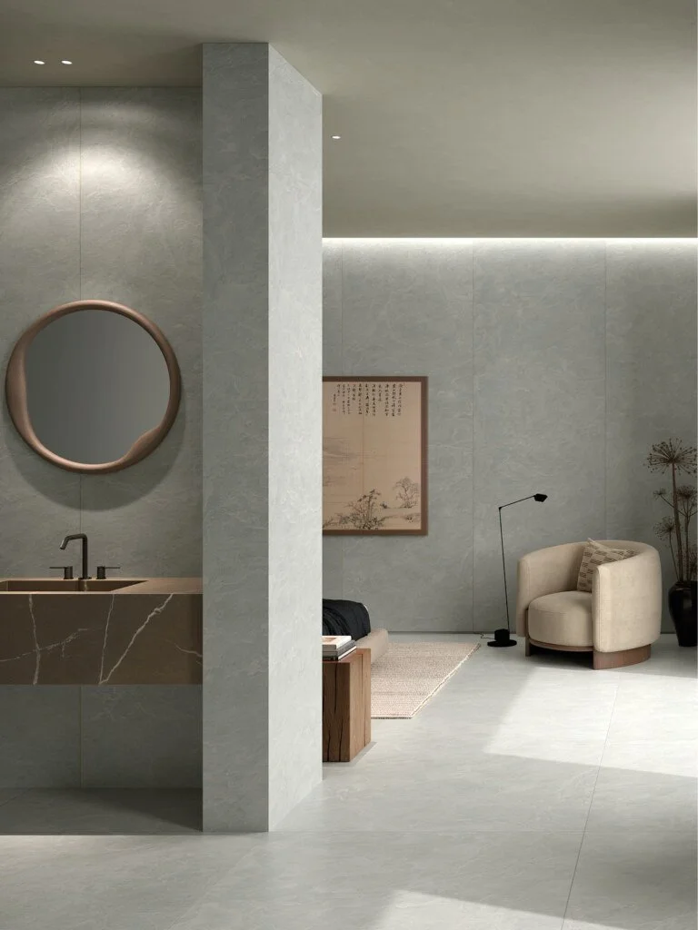 Ankara, is a 5x10, 12mm porcelain slab with a slate finish. It features a deeper, darker tone compared to Alaska, offering a rich, modern interpretation of natural stone textures.