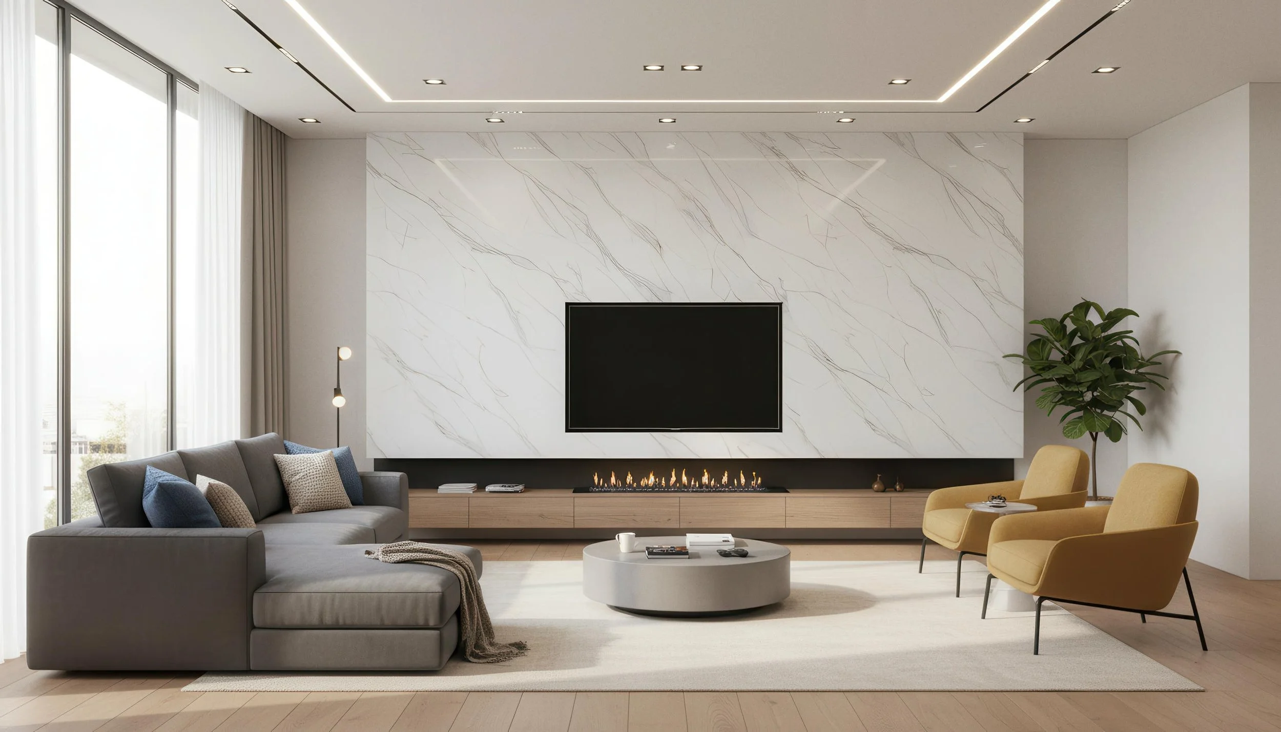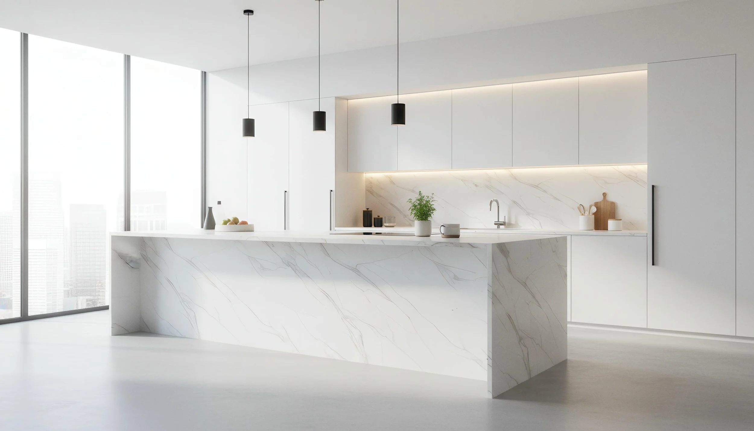 Karami White showcases a creamy white base accented with delicate grey and orange veins arranged in a 3-face vein-matched (ABC) pattern, delivering a seamless marble-inspired aesthetic. This 4x10-foot, 9mm polished porcelain slab is ideal for walls, flooring, and decorative panels. Elegant and versatile, Karami White brings subtle warmth and sophistication to contemporary and classic interior spaces.
